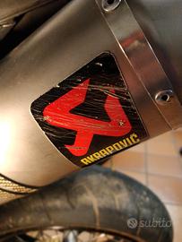 Con disco a fiorellino con modonatura arancio, e scarichi Akrapovic completi di db killer (facilmente amovibile)
