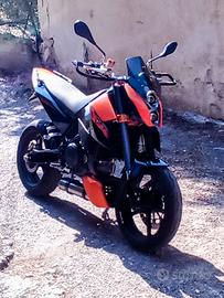 Vendo KTM Duke 690 del 2008 con pochissimi km. È dotata di scarico sp Project, cupolino fumè, sella confort, para leve freno e frizione, ergal vario (piastre forcella, tappi freno e frizione, corona), gommata Pirelli Diablo rosso IV con circa 1500 km. Dispongo inoltre di tutti i pezzi originali. La moto è praticamente nuova, appena tagliandata con olio Motorex e si presenta perfetta nell'estetica come in ogni sua parte. Custodita sempre in garage e tenuta con cura maniacale. Vendo a malincuore per inutilizzo. Prezzo leggermente trattabile. Per info contattami al 3282819740