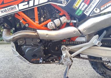 KTM 690 Enduro R - in ottime condizioni, con circa 10.000 Km. dopo revisione totale di Motore, Gruppo iniezione, ciclistica, trasmissione ecc. documentato da fatture, ricambi originali KTM. con molti componenti e ricambi vari. La moto è allestita con un Kit Raid per uso viaggio, adventure, rally ecc composto da serbatoio aggiuntivo + 6 lt. (Rade garage), portapacchi con borsa laterale 20 lt. a sgancio rapido e borsa/attrezzi 10 lt. Ribaltabile per il rifornimento e rimuovibile. Torretta portastrumenti con cupolino policarbonato, mascherina faro maggiorata + 4 cm., Paracoppa in alluminio mm. 4 con protezioni estese alla pompa freno e sensore cavalletto, presa USB e selettore mappe al manubrio, dongle esclusione ABS posteriore, Scarico GPR omologato, Portatarga alto + parafango allargato, ed altri utili accessori. Tutti i componenti originali sono disponibili. Per chi non è interessato posso smontare l'intero Kit Raid e vendere la moto con i componenti originali. Vendo per cambio tipologia di moto, contatto diretto per ogni ulteriore descrizione, foto, trattativa o dettaglio.