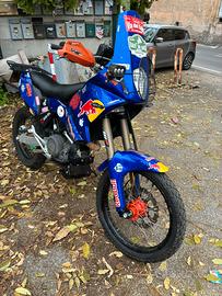 vendo KTM 690 enduro R preparata Rally Dakar. Esemplare interamente artigianale, unico nel suo genere. Alessaggio cilindro portato a 710 cc, elaborata e potentissima. I rally e le uscite off-road sono il suo pane ma non dispiace anche negl spostamenti in strada e gite fuori porta grazie agli alberi controrotanti ed al motore prestazionale. monta kit akrapovic, con filtro RACE, monta una comoda e capiente cassetta attrezzi modello Dakar con alloggio estintore al sottoscocca con chiusura a