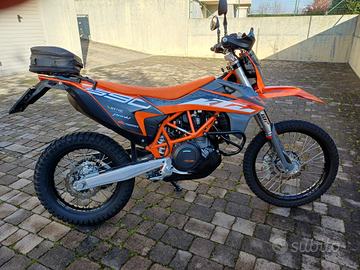 Moto pari al nuovo con: portapocchi, paracoppa acerbis, codino corto, paramotore, cupolino, paramani chiusi, grafiche ktm, protezione pignone in alluminio, allargamento cavalletto, riser manubrio, specchietti ripiegabili, borsina posteriore fissa e pedale freno pieghevole.