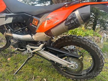 Ktm 690 enduro R del 2010 Moto perfetta, pronta all’uso. A libretto omologata anche con cerchi motard. Fatto da poco il tagliando dei 30k con regolazione gioco valvole dimostrabile con fattura. Monta: gomma posteriore nuova Continental, terminale Leovince, display contakm digitale, comando per cambio mappa motore al manubrio. Insieme fornisco tutti i pezzi originali e una batteria nuova, comprata e mai montata perché la sua va ancora bene.