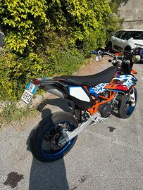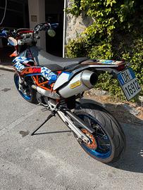 Vendo KTM 690 Enduro R del 2009 con doppio kit motard ed enduro e doppia omologazione. Monta terminale Arrow omologato ed i cerchioni in ergal blu. Fornisco anche tutti i pezzi originali tra cui il terminale. La moto risulta depotenziata a libretto e quindi guidabile con patente A2.