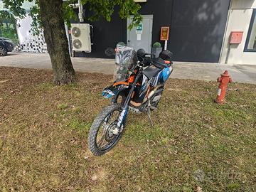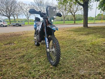 Vendo per cambio mezzo la mia 690 con mousse anteriore e tubliss al posteriore , pedane maggiorate , scarico Akrapovic, batteria al litio , filtro k&n lavabile , torretta mst con portatablet , paramani e portapacchi sw motech , paracoppa in alluminio , protezioni carter ,presa usb Le plastiche e le grafiche sono personalizzate , cosi come la sella . Sospensioni appena revisionate da noto preparatore e corredate di raschiafango Skf.Moto in ordine collaudata e assicurata si può provare senza problemi.Cambi olio e filtri ogni 3k km recentemente è stata fatta la verifica valvole con sostituzione tendicatena ,e la sostituzione di pastiglie e dischi .