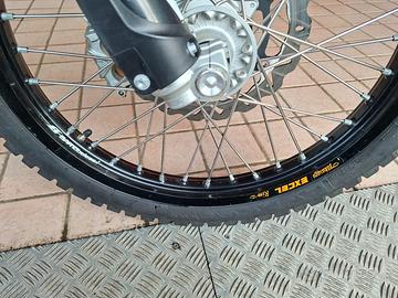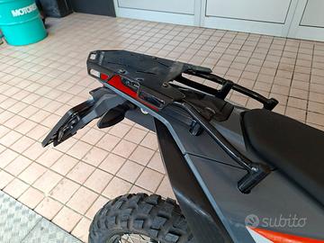 La monocilindrica 690 di KTM in condizioni ottime, estetiche, di manutenzione e degli pneumatici, con una extra dotazione che comprende le protezioni crash bar, para motore originali Power Parts, il piccolo porta pacco posteriore ed altri accessori marginali sostituiti con articoli after market anodizzati arancio. Di tutt'altro valore invece, i cerchi ruota (NON le ruote complete!) che sono della EXCEL trasformati in tubeless extra serie.