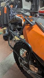 Vendo KTM 690 con doppia omologazione, molto versatile e in ottime condizioni. In poco tempo si può passare dalla configurazione Enduro a quella Supermoto. Dotazione: - Cerchi e pneumatici Enduro 21/18" con sospensioni della 690 Enduro R (maggiore escursione) - Cerchi Supermoto 17" con sospensioni dedicate e taratura specifica - Due set di plastiche: Enduro + Supermoto - Mascherina anteriore con parabrezza - Kit di abbassamento installato (incluso anche il pezzo originale) - Portapacchi posteriore Touratech in alluminio - Scarico Akrapovic montato + scarico originale incluso - Valigie laterali Touratech disponibili separatamente a € 400 (una con piccola ammaccatura, perfettamente funzionante). Moto in regola, manutenzione eseguita con cura, pronta all'uso.