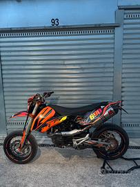 Vendesi bellissima KTM 690 SMC con soli 20.000 km Depotenziata per patente A2 (35kw) Monta svariati accessori tra cui pezzi in Engel come piastre, manubrio, puntali, tappi ecc Gomme nuove Scarico completo Akrapovič Moto Pronta all’uso