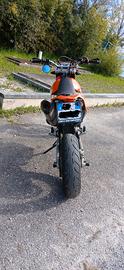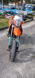 supermotard . ottimo stato solo 15000 km tenuta sempre in garage su cavalletto centrale, compreso nel pacchetto. km originali dimostrabili. pacchetto EVO 1 completo, scarico completo in titanio akrapovic, filtro aria e mappatura mono. vari inserti in carbonio ktm, sella ktm power parts, paramani, frecce e faro led posteriori, para motore in acciaio. gomme 80%. prossima revisione maggio 2026. tagliando olio e filtri motore, dischi frizione e attuatore frizione idraulica ed olio frizione, fatti a metà marzo 26, quindi tutto nuovo. pastiglie brembo sostituite stessa data. moto pronta da essere usata, nessun lavoro da fare. non presenta graffi. tenuta in maniera impeccabile. vendo a malincuore causa inutilizzo.