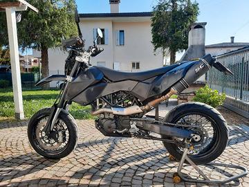 Vendo KTM 690 smc del 2011, la moto è in ottime condizioni, usata esclusivamente per uso stradale(tragitto casa lavoro), mai incidentata. Moto depotenziata a libretto quindi guidabile anche per patenti A2. La moto ha 45.000 chilometri regolarmente tagliandata. Moto regolarmente revisionata. La moto monta: - scarico SC project omologato; - faro led; - para colpi motore; - para mani; - pneumatici Metzeler Sportec M5 interact nuovi. Insieme vi cedo lo scarico originale e le plastiche originali. Prezzo leggermente trattabile. Vendo per cambio moto.