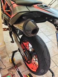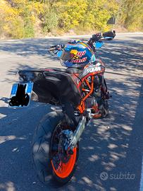Vendo Ktm con 26.513 km ATTUALMENTE IN USO, regolarmente tagliandata e mantenuta in condizioni maniacali, sempre custodita all'interno della mia abitazione. La moto è depotenziata solo a libretto (35kW), quindi guidabile con patente A2 ma a potenza piena. Il mezzo non è mai caduto; segnalo solo dei minuscoli graffi superficiali ai lati del manubrio dovuti esclusivamente a manovre in spazi stretti. La moto è stata completamente personalizzata con wrapping e monta numerosi accessori di alta gamma: scarico completo con collettore Power Bomb in titanio e terminale Arrow in titanio/carbonio (con protezione anello), filtro sportivo racing, porta targa Evotech, faro anteriore full led e frecce mini led anteriori e posteriori pedaline e tamponi protezione carter aftermarket. La moto è attualmente visionabile presso il mio domicilio anche se con assicurazione sospesa. Il prezzo è leggermente trattabile