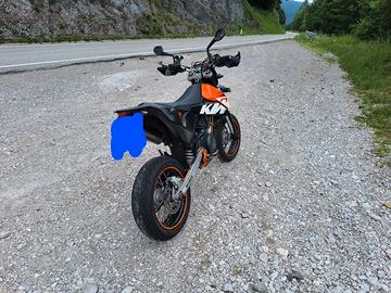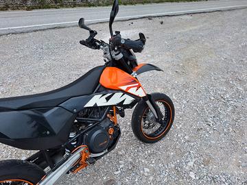 Vendo ktm 690 smc depotenziato a libretto (guidabile con patente A2 con bollo ridotto). Completo di pinza radiale radiale brembo, pastiglie anteriori appena sostituite, scarico Sc Project con db killer estraibile, filtro DNA con copri filtro aperto e mappatura dedicata. Gomme Michelin bimescola all'80%. Sempre tagliandata ogni fine stagione con olio Motul. Consegno assieme parafango anteriore e codone arancione più tutta la dotazione di serie.