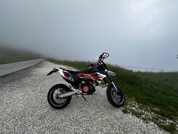 Vendo KTM 690 SMC 2011 non depotenziata per passaggio a cilindrata superiore. La moto monta: -Scarico SC-Project Oval con fondello in carbonio. -Kit di rimozione SAS ed EPC. -Centralina rimappata con cavo TUNECU. -Gomme Dunlop Sportsmart mk3 all’attivo con circa 4000km. -Filtro aria aperto. -Paracolpi gomma anteriore e posteriore più paracolpi telaio. -Sostituzione di corona, pignone e catena (pignone antivibrazione 15 denti e corona 44 denti ergal). -Kit plastiche modello R -Tagliando filtri ed olio eseguito ogni 1500 km con olio MOTUL 10W60. -Controllo di corpo farfallato e gioco valvole eseguito a 19000km. La moto presenta anche alcune modifiche estetiche: -Paramani in ergal AlbaMotorParts -Puntale freno posteriore ergal. -Leva del cambio in ergal AlbaMotorParts. -Pedane ergal AlbaMotorParts. -Copri carter frizione ergal. -Leve freno anteriore e frizione ergal. -Come scritto sopra, corona in ergal originale KTM. -Spinotto USB. -Porta targa aftermarket. La moto non ha nessun tipo di lavoro da eseguire ed è pronta per la strada così com’è, mai posta, mai incidenti sempre tenuta al coperto. Prezzo trattabile.