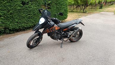 KTM 690 Supermoto del 2008 moto perfettamente funzionante e marciante , viene usata tutti i giorni . lavori eseguiti : -sostituziono pneumatici anteriori e posteriori con Dunlop roadsmart 4 con all'attivo poco più di 1000 km -tagliando completo con olio Motul 7100 10w60 e filtri originali KTM -sostituzione pastiglie anteriori e posteriori con bermbo 07BB19.SA e 07BB02.CC , appena finite di rodare percorsi pocomeno di 300 km la moto monta : -collettori leovice - doppio terminale in carbonio leovice SBK con relativo certificato di omologazione specifico per la moto -filto aria sportivo -cupolino aggiuntivo -paramani -frecce a led dinamiche la moto viene venduta con collettori e terminali originali , Altrimenti cosi com'è con aggiunta di 450€ Per maggiori informazioni non esitate a contattarmi