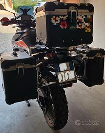 Trittico Valigie in alluminio Touratech con supporti.