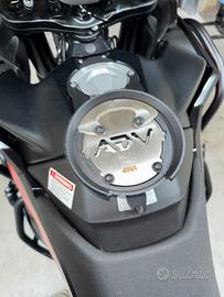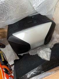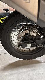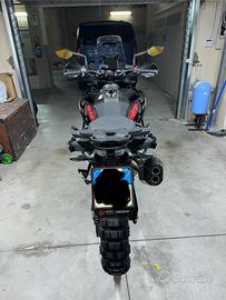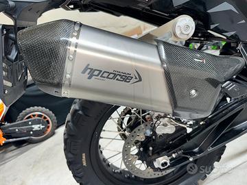 Scarico HP corse in Titanio e carbonio completo di collettore de catalizzato, scarico e catalizzatore originali, tutti i pacchetti software sbloccati, cambio quick shifter, cavalletto centrale e laterale, valigie laterali touring basculanti usate una sola volta. tubolari laterali para fiancate e motore, cupolino originale più cupolino alto e cupolino basso per off road. Gomme originali con 2.700 km e Coppia gomme montate tassellate Mitas con 1000 km. Borsa serbatoio