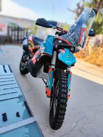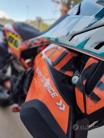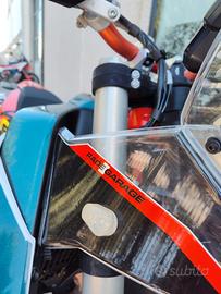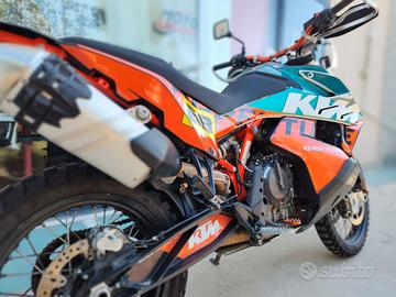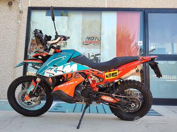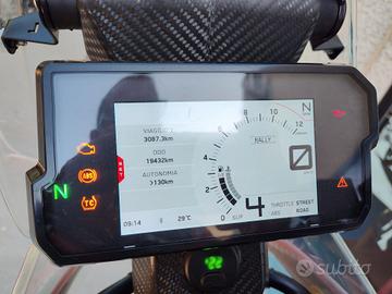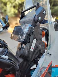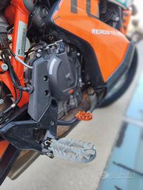 KTM 790 ADVENTURE R pedane maggiorate Factory Racing, quickshifter plus, torretta Rade Garage in carbonio, grafiche personalizzate, manubrio RENTHAL TWINWALL HANDLEBAR, sella PowerParts in gel -25mm, Sistema dell'Assorbimento Progressivo al manubrio (PHDS), questo sistema offre: Attenua i colpi più duri Assorbe le vibrazioni di telaio e motore Il manubrio è ulteriormente ammortizzato in orizzontale Precisione di guida ottimale Doppia regolazione in altezza del manubrio Ulteriori elementi antivibranti in tre diversi gradi di durezza (soft, medium, hard) per una taratura individuale.