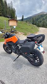 Vendo bellissima KTM Duke 790 made in Austria, anno 2018, 105 cavalli, tre mappature motore (rain, street, sport), ABS, controllo di trazione, km 44552. Tagliandata regolarmente ogni anno in KTM Treviso (tutto documentabile), usata per turismo. Sempre custodita in garage sui cavalletti. Moto in ottimissime condizioni, appena eseguito tagliando (04.09.2025), gomme Pirelli Diablo Rosso 3 al 70%, trittico trasmissione sostituito l'anno scorso a 39000 km. Prossima revisione 07-2026. Dispone di porta targa sportivo Power Parts (disponibile anche l'originale), presa USB, maniglione passeggero e cupolino personalizzato. MAI un problema, MAI caduta, NON dovete farci nulla se non accenderla e partire!