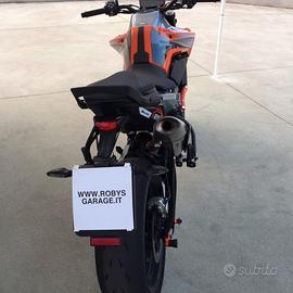 Un unico obiettivo: dominare la strada. Accessori: portatarga racing ktm originale, marmitta racing ktm, pompa freno radiale Brembo, tubi in treccia orange, pinze freno monoblocco Brembo M50, registri catena e accessori speciali in ergal, parti originali a corredo. Escluse spese di passaggio.