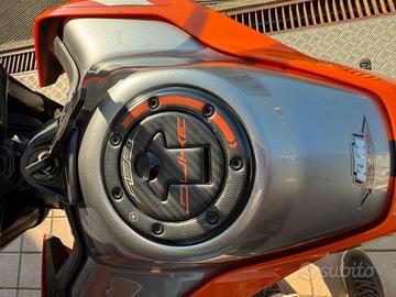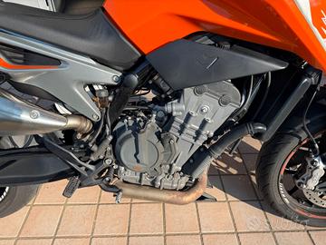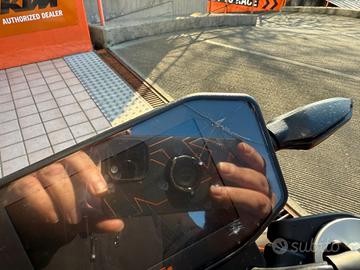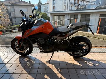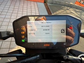 KTM 790 Duke del 2019, un solo proprietario che ora è passato ad altro genere di moto e che con questa moto ha percorso tutti i 24199 km, portandola sempre nella ns officina per la manutenzione ordinaria, l'ultima eseguita una settimana fa. Come da foto, causa una grandinata presa qualche tempo fa, il cruscotto ha subito una rottura del cristallo superficiale che non ne pregiudica il normale funzionamento, ma ovviamente l'estetica.