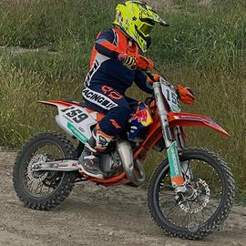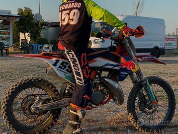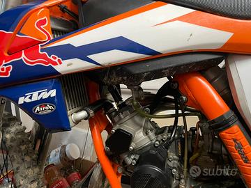 Vendo per passaggio a 125, ktm 85 sx del 2018 con pistone attualmente a 0 ore, piove e non siamo usciti a girare. Moto completamente in ordine. Gomme nuove, forcelle appena revisionate. Monta nelle forcelle i pompanti Ohlins quindi no forcella ad aria. Disponibile a qualsiasi prova.
