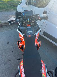 La moto è nuova, ha 3000km. Vendo per trasferimento ed inutilizzo. Monta: Tech Pack Filtro aria aggiuntivo KTM Paramotore AXP Racing Gomme Mitas Enduro Trail XT+ Gomme di serie Mitas Paracruna CNC Grafiche protettive in vinile Moto PRO Works Supporto tablet adventuring Manettino bluetooth tablet Specchietti pieghevoli