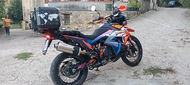Vendo per inutilizzo KTM 890 Adventure, moto perfetta con moltissimi accessori tra cui: kit valige rigide e bauletti dolomite trekking completi di borse stagne originali, scarico storm omologato, cupolino rade garage più cupolino alto e cupolino basso R, pneumatici anlas capra x montati più treno Continental time Attack3, kit Power parts paramani e barre para motore basse heed, borsa eduristan espandibile sostitutiva del bauletto, kit leverismi ergal, leve frizione e freno regolabili in ergal, specchi richiudibili, kit grafiche professionali con triplo strato (removibili per tornare alle grafiche originali), cavalletto centrale, sella Power parts rally,Paramani alluminio powerparts, Tagliando fatto da 1000 km (olio motorex e filtri KTM) moto fantastica, prezzo di vendita sotto quotazione e con oltre 2000 euro di accessori. Con la moto verranno cedute anche tutte le parti originali sostituite. Vendo per inutilizzo NON SCAMBIO e NON VENDO ACCESSORI SEPARATAMENTE (non smonto nulla per venderlo a parte rispetto alla configurazione attuale della moto).