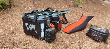 Vendo per inutilizzo KTM 890 Adventure, moto perfetta con moltissimi accessori tra cui: kit valige rigide e bauletti dolomite trekking completi di borse stagne originali, scarico storm omologato, cupolino rade garage più cupolino alto e cupolino basso R, pneumatici anlas capra x montati più treno Continental time Attack3, kit Power parts paramani e barre para motore basse heed, borsa eduristan espandibile sostitutiva del bauletto, kit leverismi ergal, leve frizione e freno regolabili in ergal, specchi richiudibili, kit grafiche professionali con triplo strato (removibili per tornare alle grafiche originali), cavalletto centrale, sella Power parts rally,Paramani alluminio powerparts, Tagliando fatto da 1000 km (olio motorex e filtri KTM) moto fantastica, prezzo di vendita sotto quotazione e con oltre 2000 euro di accessori. Con la moto verranno cedute anche tutte le parti originali sostituite. Vendo per inutilizzo NON SCAMBIO e NON VENDO ACCESSORI SEPARATAMENTE (non smonto nulla per venderlo a parte rispetto alla configurazione attuale della moto).