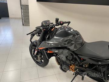 Concessionario ufficiale vende Ktm 890 duke del 2021 con solo 7252 km, unico proprietario venduta e sempre seguita dalla ns. concessionaria, optional compresi nel prezzo: kit sospensioni Wp forcella + mono powerparts, pinze e pompa freno Brembo, portatarga corto, vario ergal, prolungamento cavalletto laterale, specchi handbar, tubi acqua arancio...con queste modifiche è praticamente una versione R