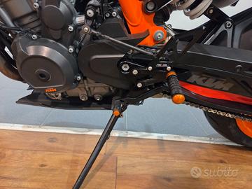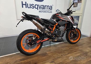 KTM DUKE 890 R km 12400 04/2021 Finanziamento a tasso Agevolato Possibilità di consegna in tutta Italia Optional: -Tech Pack -Pedane arretrate -Cupolino -Protezione radiatore -Protezioni forcella e forcellone -Paraserbatorio -Monoposto -Portatarga -Nottolini cavalletto -kit grafico Il Tech Pack è progettato per esaltare l'esperienza di guida in sella alla 890 DUKE e offre funzionalità elettroniche avanzate come il Launch Control, la modalità di guida Performance - con Traction Control regolabile su 9 livelli e risposta del gas regolabile su 3 livelli - l'Anti-Wheelie regolabile su 5 livelli, il Lap Timer per cronometrare i giri in pista, la Telemetria per monitorare l'angolo di piega attuale, l'angolo di piega massimo, la posizione della valvola a farfalla o l'intervento massimo del controllo di trazione, il Quickshifter+, l'MSR (regolazione del freno motore) e il Cruise Control. Misure Altezza minima da terra 206 mm Altezza sella da terra MIN 834 mm Peso a secco 166 kg Motore Cilindrata 889 cc Tipo motore termico Tempi 4 Cilindri 2 Configurazione cilindri in linea Raffreddamento a liquido Avviamento elettrico Alimentazione iniezione Alesaggio 90,7 mm Corsa 68,8 mm Frizione automatica Ride by Wire Sì Controllo trazione Sì Mappe motore 3 Potenza 121 CV - 89 kW Coppia 99 Nm Emissioni Euro 5 Tipologia cambio meccanico Numero marce 6 Consumo medio VMTC 21 km/l Capacità serbatoio carburante 14 lt Trasmissione finale catena Ciclistica Telaio in acciaio al cromo-molibdeno con il motore come elemento sollecitato, verniciato a polvere Sospensione anteriore Forcelle WP APEX completamente regolabili con molle lineari Escursione anteriore 140 mm Sospensione posteriore Un ammortizzatore WP APEX completamente regolabile gestisce il posteriore della moto. Escursione posteriore 150 mm Tipo freno anteriore doppio disco 320 mm Tipo freno posteriore disco 240 mm