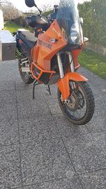 ktm 990 adventure efi dell 2007 molto particolare, monta serbatoi maggiorati della fuel tanks da 45 litri con i tubolari di protezione, scarichi akrapovic, telai e valigie touratech da 45 litri con taniche aggiuntive borsa serbatoio , blocchetto fari del 950 che consente lo spegnimentodei fari a quadro acceso, cerchio anteriore excel, catene distribuzione fatte in ktm ad 85 k km . moto in buone condizioni. non vendo accessori al momento, e non ho i serbatoi originali.