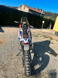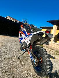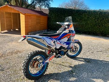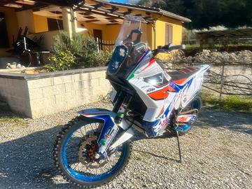 Sospensioni 290mm aria+molle , cerchi excel mozzi bartubless , dischi braking , piastre dal pieno 4k , manubrio renthal , torre di navigazione 4k , piedini forcella ergal dal pieno m2spring , carter frizione dal pieno m2spring , pompa freno anteriore brembo ,radiatore olio con tubazioni racing e raccorderia in lega , radiatore acqua maggiorato , pompa acqua maggiorata , alternatore e regolatore mosfet americano , batteria al litio sottosella 7ah , serbatoio olio sottosella , telaietto artigianale con sovrastrutture exc , no abs , filtro aria itg , scarico artigianale slip on , paramotore 4k , tubi in treccia , trasmissione did top di gamma nuova , gomme 100% , tagliandata filtri valvole pompa acqua ! Peso 175 kg in ordine di marcia ! Una moto da rally !! Prezzo trattabile