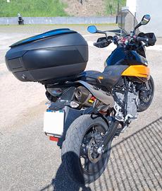 Da vetrina. Cronologia tagliandi originale KTM. Molto accessoriata con accessori originali KTM: Scarico completo Akrapovic omologato (fornisco originale e catalizzatore). Conta marce. Presa 12 V. Navigatore Tom Tom dedicato. Tris valige originali KTM. Cupolino alto toruing. Manopole riscaldabili.. Cavalletto centrale. Piastra supporto cavalletto laterale. Puntale paramotore. Sella in gel personalizzata (bellissima e fornisco anche sella originale). Trasmissione e pneumatici praticamente nuovi. Insomma se vi fate due conti, circa 5000 euro di soli accessori. Bollo scadenza Marzo 2026 e Revisione scadenza Aprile 2026. Offro e richiedo massima serietà. È veramente conservata da amatore e tenuta benissimo. Potete visionarla con vostro meccanico/carrozziere di fiducia. La moto è esposta in conto vendita presso la concessionaria FUTURAUTO in località Cittadella di Mantova