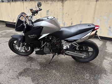 Vendo Ktm Super Duke 990 prima versione, anno 2005 con 40000km all'attivo, moto ventennale già iscritta al registro storico asi, paga il 50% del bollo e gode di agevolazione per assicurazione storica, circa 210 euro l'anno, praticamente con poco più di 260 euro l'anno si mantiene, sono stati eseguiti svariati lavori come sostituzione olio frizione idraulica, sostituzione olio freni con motul rbf 660, sostituzione batteria, regolatore di tensione e statore NUOVI, sostituzione candele con ngk iridium, tagliando completo con olio bardhal xt4s 10w50, gomme bridgestone s23 circa al 80%, tutti i lavori sono stati eseguiti in officina circa 2000km fa. ACCETTO PERMUTE SOLO CON APRILIA RS 457