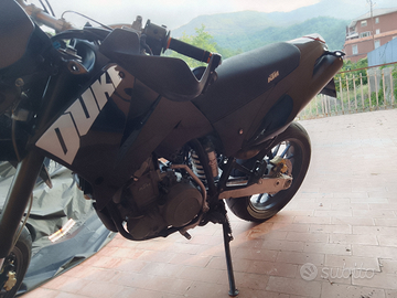 Vendo ktm duke 2 del 2004 .attualmente non la uso, usata per andare in pista 3/4 volte ,lavori fatti come da foto mascherina parafango anteriore frecce sella specchietti manopole catena corona e pignone sostituiti più di un anno fá ...era la mia seconda moto quindi ci sono da cambiare gomme e fare tagliando completo l'accendo regolarmente ma non la uso su strada. Prezzo 1500 poco trattabile
