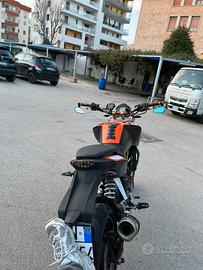 Vendo a malincuore duke 125 del 2011. La moto gira perfettamente, i tagliandi sono stati eseguiti personalmente ogni 5000km (olio 10w40 motul, filtro olio e filtro aria). Monta una candela all’iridio da c.ca 10.000km. MAI TIRATA A FREDDO. In data 03/26 sono stati cambiati: -rele principale -batteria -cavo frizione -tappo scarico olio La moto presente le seguenti modifiche: -Terminale OMOLOGATO Arrow decatalizzato con db killer rimovibile -frecce aftermarket -leve e pedali aftermarket in alluminio -tappo rabbocco olio in alluminio arancione -pedaliera conducente -manopole -tappi gomme -manubrio -attacchi manubrio -specchietti endbar -adesivi vari -stop posteriore La moto monta gomme Pirelli Diablo Rosso III. Dispongo di tutti i pezzi originali. CONTATTARE SE REALMENTE INTERESSATI AL 3343292116