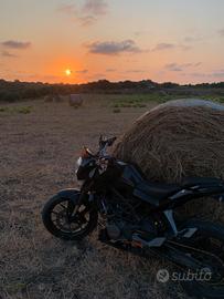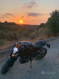 Vendo ktm duke 125 per passaggio a cilindrata superiore moto in perfetto stato tenuta bene con scarico completo acrapovic, gomma anteriore semi nuova, para strappi nuovi, gomma posteriore nuova Pirelli diablo rosso III, kit trasmissione nuovo ,pompa freno anteriore nuova ,pompa freno posteriore brembo nuova, pastiglie brembo rosse