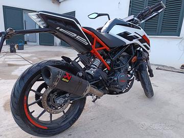 Vendesi moto KTM Duke 125 2019 per inutilizzo. La moto è stata usata poco, solamente nel periodo estivo e mantenuta in perfette condizioni. È provvista di: - Terminale Akrapovic aftermarket - Allarme elettronico immobilizzatore con due telecomandi - Doppia chiave - Tamponi laterali - Connettività con Ktm My Ride Disponibile per la visione e prova.