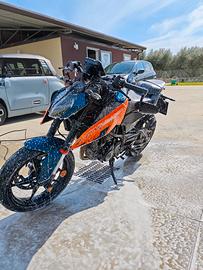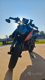 vendo ktm Duke 125 2024 per aumento di cilindrata si accettano scambi per motocicletta preferibilmente A2. questa motocicletta é stata tratta maniacalmente, sempre tenuta dentro il garage mai all'esterno, tutti gli interventi ricevuti sulle parti meccaniche sono stati effettuati da concessionario KTM, la motocicletta sarà consegnata con tagliando già effettuato, la scadenza revisione é in data 31/05/2028, la garanzia ha durata fino a luglio 2026, la moto é stata utilizzata regolarmente. la moto riporta le seguenti modifiche: gomme Pirelli Diablo rosso III montate a gennaio 2026 cupolino carbon look tamponi alla ruota anteriori e posteriori tamponi al telaio coperchi serbatoi dei freni in ergal arancione tappo olio motore in ergal arancione tappi valvole gomme marchiati KTM specchietti al manubrio omologati protezione serbatoio KTM powerparts dispongo di tutti i pezzi originali che sono stati sostituiti no perditempo-sognatori