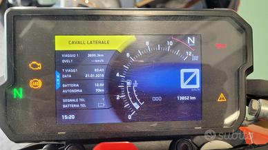 La moto presenta Scarico Akrapovic Powerparts KTM, pedane e leve in ergal arancione, gomme Pirelli Diablo Rosso 3 nuove (400 km), pastiglie nuove (300 km), pompa benzina appena montata.