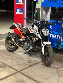 Vendesi moto in ottime condizioni. La moto monta i seguenti accessori: Scarico Arrow thunder con fondello in carbonio Decat Arrow Specchietti andbar Tamponi paratelaio Porta targa sportivo Leve freno e frizione anti rottura e regolabili Gomme Pirelli Angel gt montate da poco Antifurto elettronico Grafiche ktm Inoltre dispongo di tutti i pezzi originali La moto è sempre stata tagliandata regolarmente in concessionaria Prezzo trattabile Vendo per passaggio a cilindrata superiore Per contatto Tel. 3939556330
