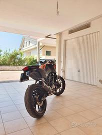Vendo per passaggio a cilindrata superiore, moto tenuta benissimo e sempre tagliandata regolarmente. Nell'estate del 2024 oltre al regolare tagliando, è stata sostituita la trasmissione completa (pignone, catena e corona) pasticche e dischi freni ant. e posteriori. L'ultimo tagliando è stato eseguito a luglio 2025. E' munita di scarico arrow (solo terminale) decat., faro anteriore, faro posteriore e frecce led. In aggiunta fornisco scarico, specchietti e tamponi manubrio originali. Sono il secondo proprietario, ma la moto sta con me dal 2021 ed è sempre stata usata con diligenza, cura e senza mai partire a freddo. Non consuma una goccia di olio Mai caduta né tantomeno incidentata. ps. nell'ultima foto si può notare un leggerissimo graffio sul copri serbatoio.