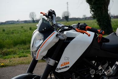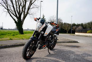 vendo ktm duke 125. la moto è in perfette condizioni gomme e pastigle nuove cambiate neanche un mese fa. gomme: pirelli super sport pastiglie: brembo in carbon ceramica come scarico monta un miv. La moto ha zero problemi. cedo anche scarico originale, specchietti originali e porta taga orginale. Prezzo non trattabile, no perdi tempo. se veramente interessati o volete foto/videonon esitate a contattarmi.