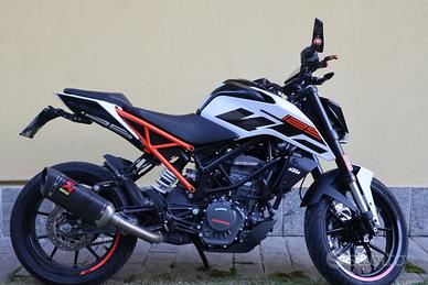 IDEALE PER PATENTE A1 Immatricolata luglio 2020. Secondo proprietario. Usata prevalentemente per tragitti urbani. Gomme nuove (200 km) Pacchetto KTM Connect incluso, con connessione bluetooth Monta Scarico Power-Parts Akrapovic (valore € 700) Porta targa Sportivo (valore € 200) Filtro dell'Aria HiFlow Specchietti Replica Rizoma Paraserbatoio Leve Antirottura Regolabili Manopole Tamponi Laterali a Manubrio Tappi in ergal Para leve (non montati). Si cedono anche scarico, porta targa e specchietti originali, libretto uso e manutenzione e attrezzi sottosella Moto tagliandata il 2.9.2025. Non più usata da fine settembre per passaggio a categoria superiore. Prezzo leggermente trattabile