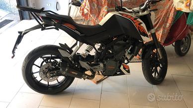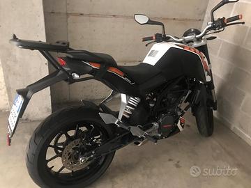 Vendo causa inutilizzo ktm Duke 125, con soli 14.000 km. Gomma anteriore nuova. Manopole nuove. Attualmente monta telaietto porta bauletto e scarico akrapovic. La moto è stata utilizzata qualche volta da una ragazza prima di passare a cilindrata superiore. Manutenzioni effettuate come da manuale. Moto pronto utilizzo, no Affaristi o perditempo