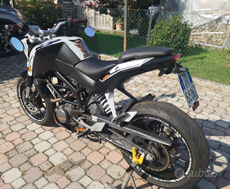 Vendo ktm duke 125, anno 2012, km 30000 circa perché in uso. Accessoriata con portatarga corto, frecce led, specchietti bar end omologati, pedaline freno posteriore e cambio in ergal, manopole, sella appena rifoderata. Borsa da serbatoio non presente in foto, un altro set di carene arancioni, batteria e statore nuovi. Gommata ad aprile con Pirelli Diablo rosso 3. Revisionata a settembre 2025. Nessun lavoro da fare, condizioni come da foto. Vendo per cambio cilindrata.