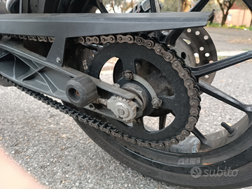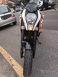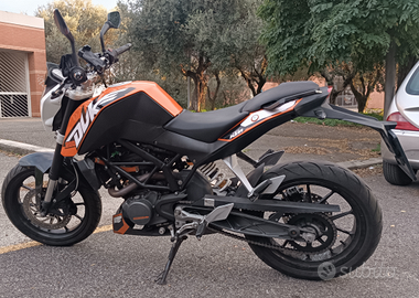 Vendesi KTM Duke 200 Orange 2012 per passaggio a cilindrata superiore. La moto immatricolata 6-2015 è in buone condizioni, (ancora coperta da garanzia di CMT Moto fino ad Aprile 2026), é ottima come prima moto si guida con pat A2, leggera e maneggevole nel traffico divertente fuori città, Km 37000, tagliandata, revisione valida fino a maggio 2026, Catena, Corona e pignone (e parastrappi) appena sostituiti, pompa freno posteriore nuova, cavo acceleratore e sensore antiribaltamento nuovi, gommata 80%, € 1900 poco trattabile