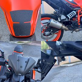 Vendo Ktm Duke 390 2024 in condizioni impeccabili per sostituzione con un’altra moto più potente. Duke 390 trattato maniacalmente. TAGLIANDO FATTO MARZO 2026 (pochi giorni fa), + altri 2 tagliando fatti a 1000km e a 8600km, sempre in concessionaria ufficiale KTM monta i seguenti accessori (riportati nelle foto) -Quickshifter up&down -scarico ixil omologato per uso stradale (possiedo l’omologazione) -porta-targa corto bagoros performance -entrambe le selle con imbottitura confortevole (tappezzerie italia) -cupolino in carbonio originale ktm -para serbatoio originale ktm