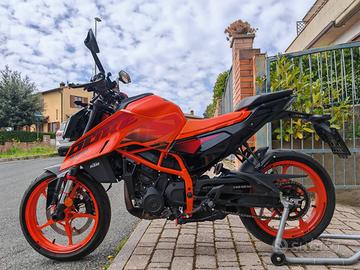 Vendo KTM DUKE 390, per passaggio ad una moto di cilindrata superiore. La moto è sempre stata tenuta in garage, non è mai caduta, non presenta nessun difetto, come nuova. La moto monta un paraserbatoio in gomma e altri due sui lati per evitare raschi o altro, in più monta i paraleve. I tagliandi sono stati fatti regolarmente, monta le sue gomme originali. La moto è super divertente e ottima per patente A2.