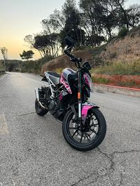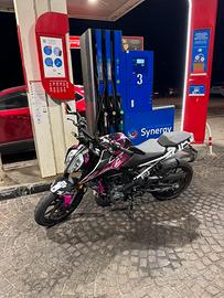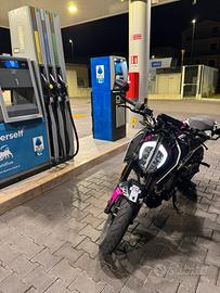 Vendo a malincuore KTM Duke 390 immatricolata a novembre 2022 , con circa 9.200 km( la moto attualmente è in utilizzo quindi i km possono variare leggermente), tenuta con grande cura e passione e sempre in garage. Moto divertentissima, leggera e affidabile, perfetta sia per neopatentati A2 sia per chi cerca una naked brillante per l'uso quotidiano, grazie ai suoi bassi consumi. Le condizioni generali sono ottime, meccanicamente impeccabile e pronta all'uso. Le gomme appena cambiate, bollo già pagato. ACCESSORI installati (tutti inclusi nel prezzo): Kit grafiche racing Scarico Arrow Nichrom Pro Race omologato, con certificato di omologazione - 400eur Rimozione cassa di risonanza con tubo diretto (decat) - 50eur Specchietti su manubrio omologati per uso stradale - 50eur Porta-targa sportivo Devandcraft - 50eur gomme nuove Bridgestone battlax s23- 240eur TUTTI i pezzi originali sono inclusi: scarico, specchietti, porta-targa, cassa di risonanza, contrappesi manubrio. P.S. La moto presenta una leggera ammaccatura sul serbatoio, poco visibile e puramente estetica. Si può sistemare facilmente (bisognerebbe scollare e successivamente riattaccare facilmente una parte della grafica), ma ho preferito non intervenire visto che ho deciso di venderla, lasciando libertà al futuro proprietario. Vendo per cambio di cilindrata, nessun problema o urgenza. tagliandi effettuati a 1000km, 4400km,9000km quindi tenuta sempre in perfette condizioni ed è prontissima per l'utilizzo. Contattami senza problemi per info o foto aggiuntive. No perditempo, grazie. #duke390 #patenteA2 #KTM #motoA2