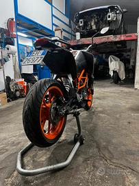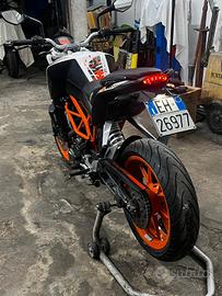Vendo, per passaggio a categoria superiore, questa bellissima ktm duke 390 del 2016 guidabile con patente A2, la moto è in ottime condizioni generali e monta molti accessori come specchietti sportivi, porta targa R&D sportivo, sella gel ktm racing parts, luci completamente a led, vaschetta liquido freno posteriore in alluminio cnc ktm, portatelefono ecc, la moto monta gomme Michelin con 5000 km all attivo, è stato effettuato il tagliando completo olio bardahl e filtri e sostituzione olio freni circa 1000 km fa, di recente è stato sostituito anche il sensore olio perché difettoso e il tenditore catena distribuzione perché rumorosa, e il mono ammortizzatore posteriore per perdita olio, ovviamente i ricambi sono tutti solo originali ktm!! Attualmente la moto ha 51000km e non necessita di niente, dovete solo mettervi sopra e divertirvi.